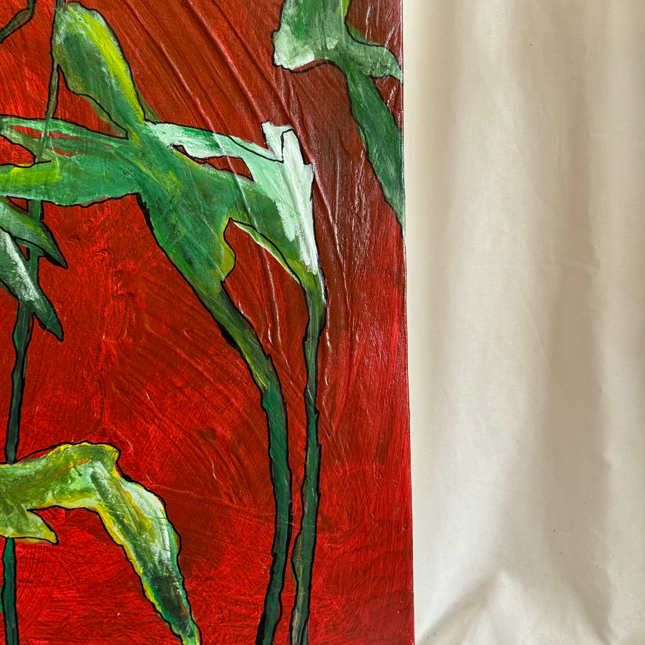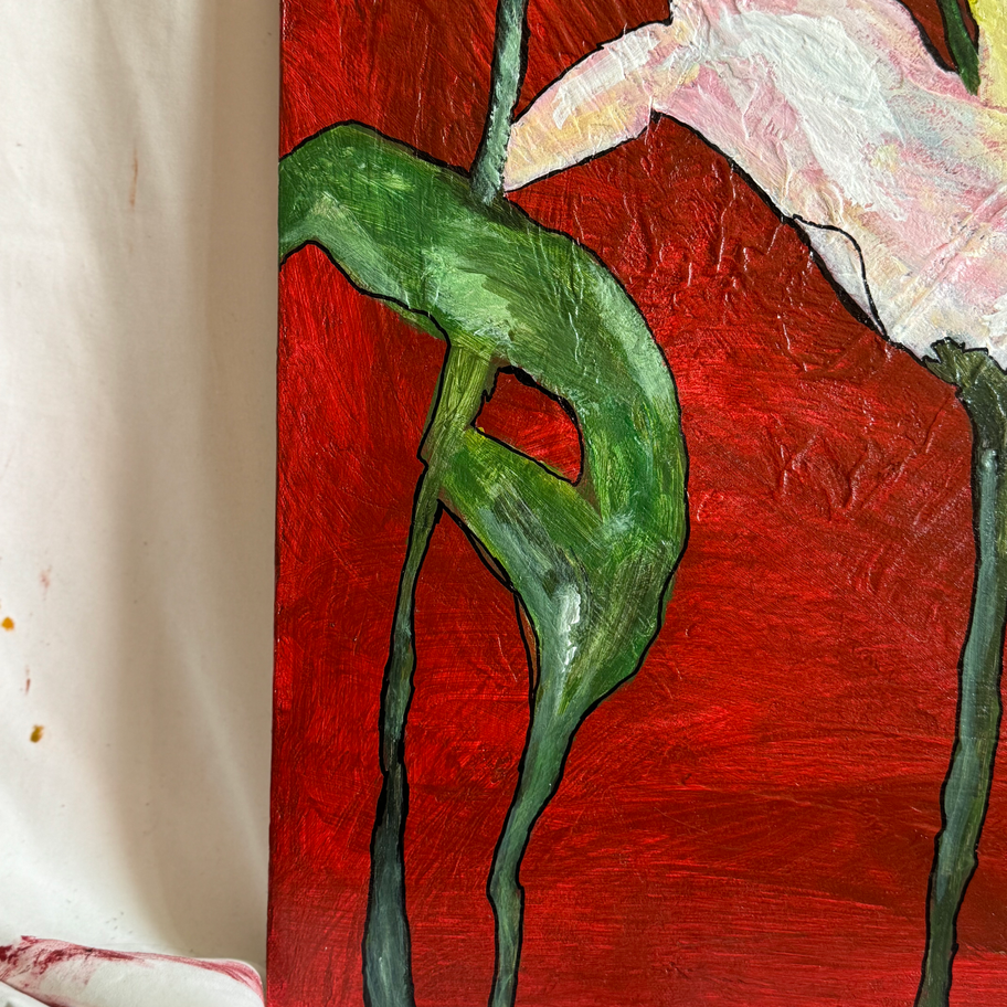 Whispers of bloom, suspended in crimson. A quiet tension between softness and fire.